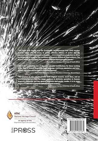 The field of forensic linguistics is a niche area that has not enjoyed much participation from the African continent. The theme of language and the law in this book is one that straddles two important aspects of the legal history of South Africa in particular, and how it has impacted on the country’s legal and education systems. The field of forensic linguistics is a niche area that has not enjoyed much participation from the African continent. The theme of language and the law in this book is one that straddles two important aspects of the legal history of South Africa in particular, and how it has impacted on the country’s legal and education systems. The declaration, by the United Nations, of 2019 as ‘The International Year of Indigenous Languages’ is opportune, not only for the launch of this book, but for what its research content tells us of the strides taken in ensuring access to justice for all citizens of the world in a language they understand.